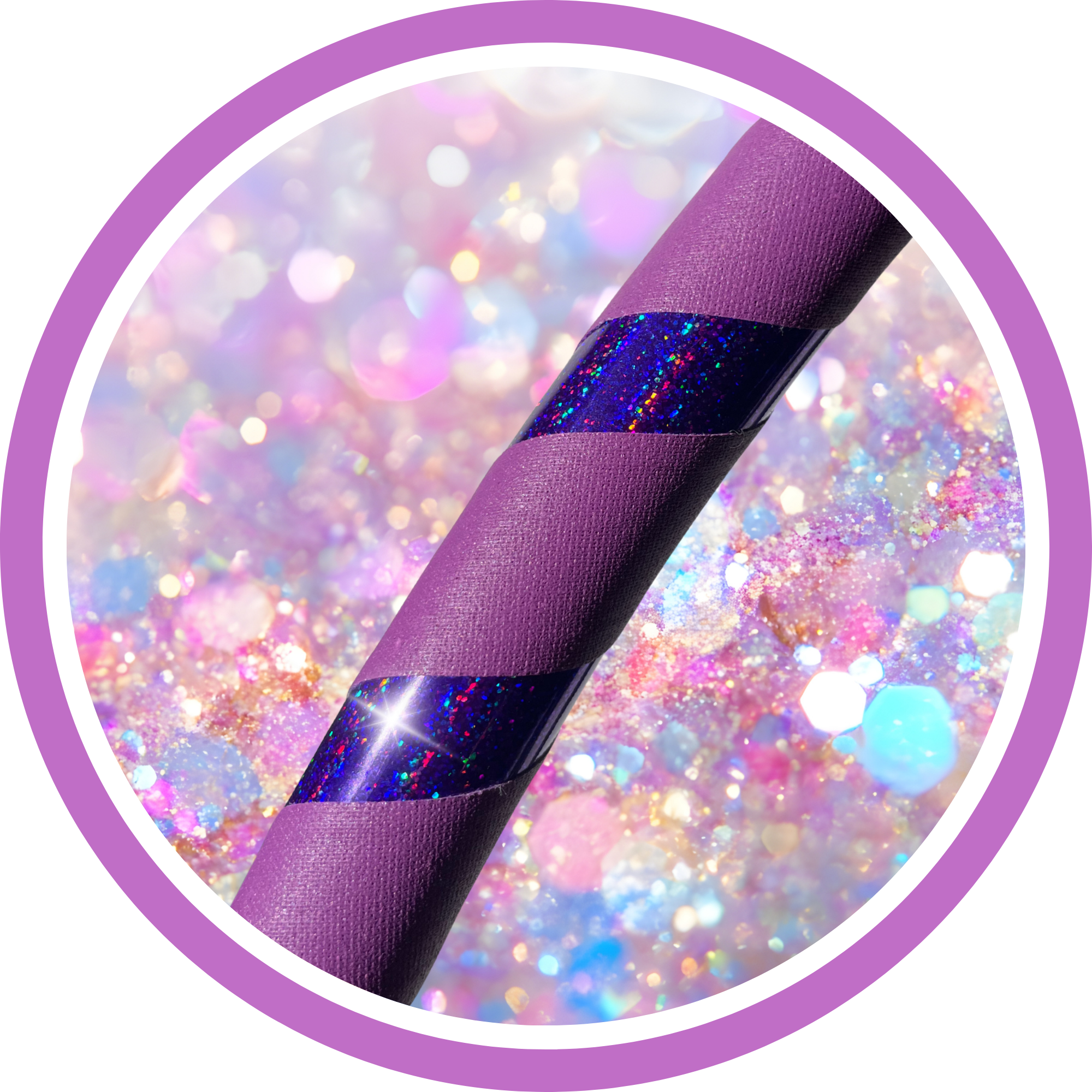 This super shimmery hoop is half purple sparkles, and half purple grip tape. It catches the light as you twirl and swirl, while being easy to hold on to. This is a limited edition design!